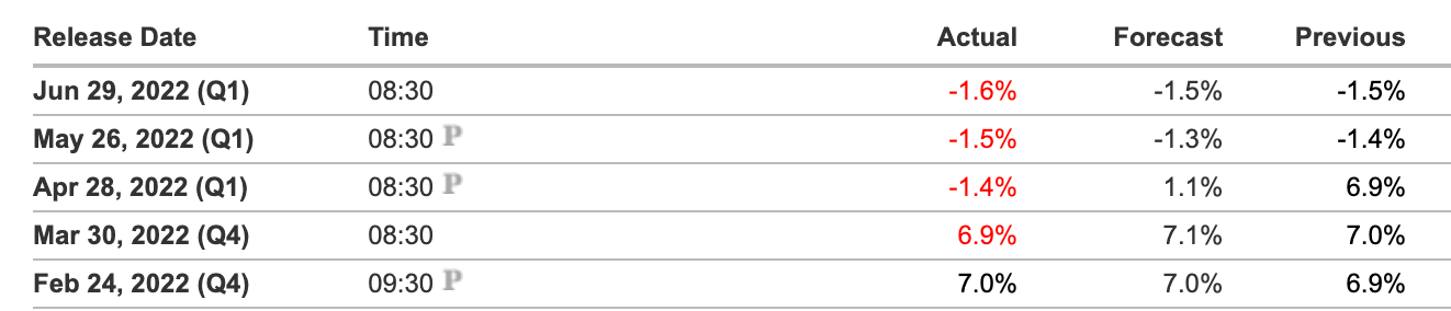 So while the GDP dropping for the U.S. over the last four months is alluding to output dropping and supply chain issues, it doesn’t do a great job. (Declining GDP showcased below)
