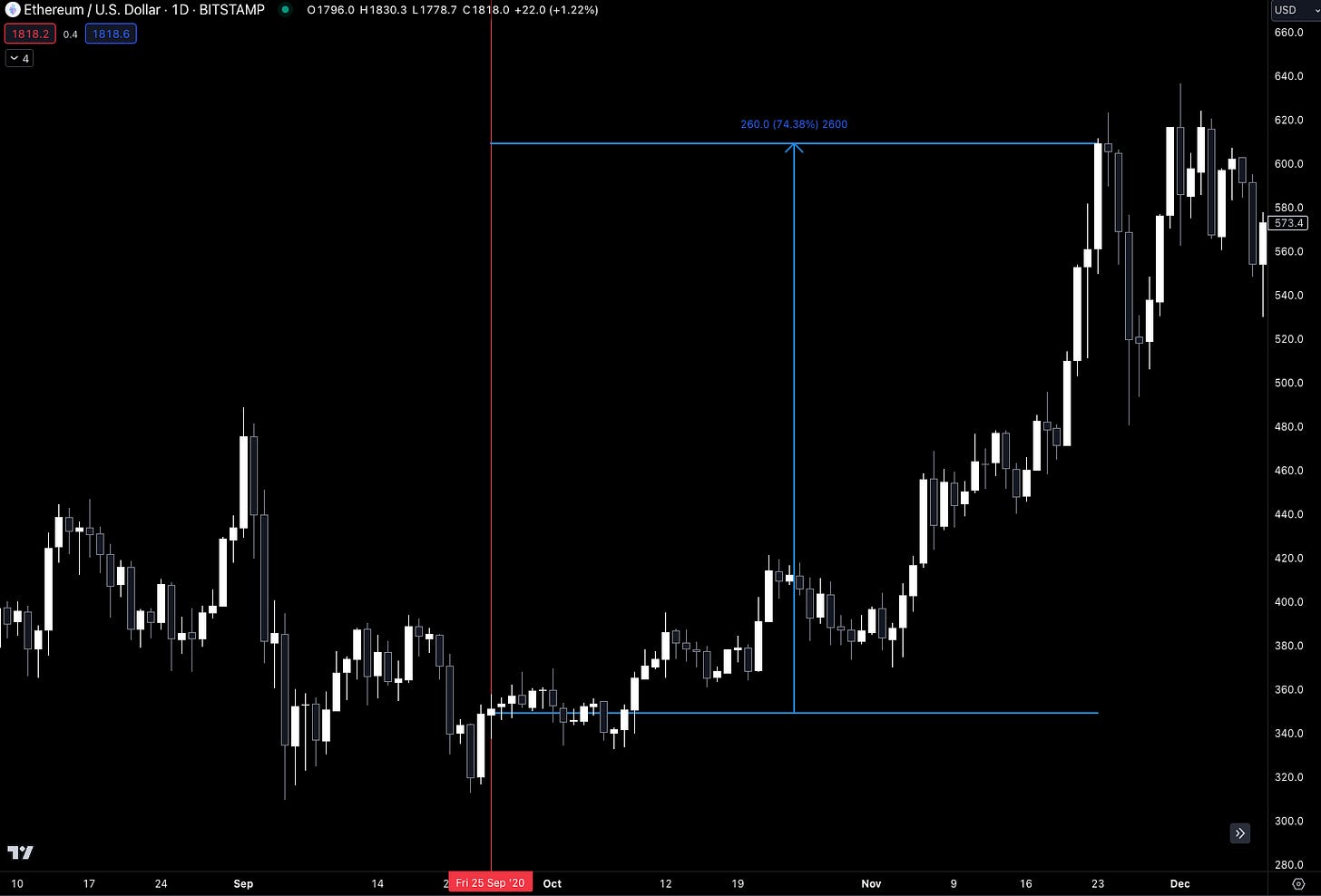 To sum it up here, DeFi summer happened… the usage of ETH tokens changed… And once activity appeared, the token became much more responsive to upticks in demand.